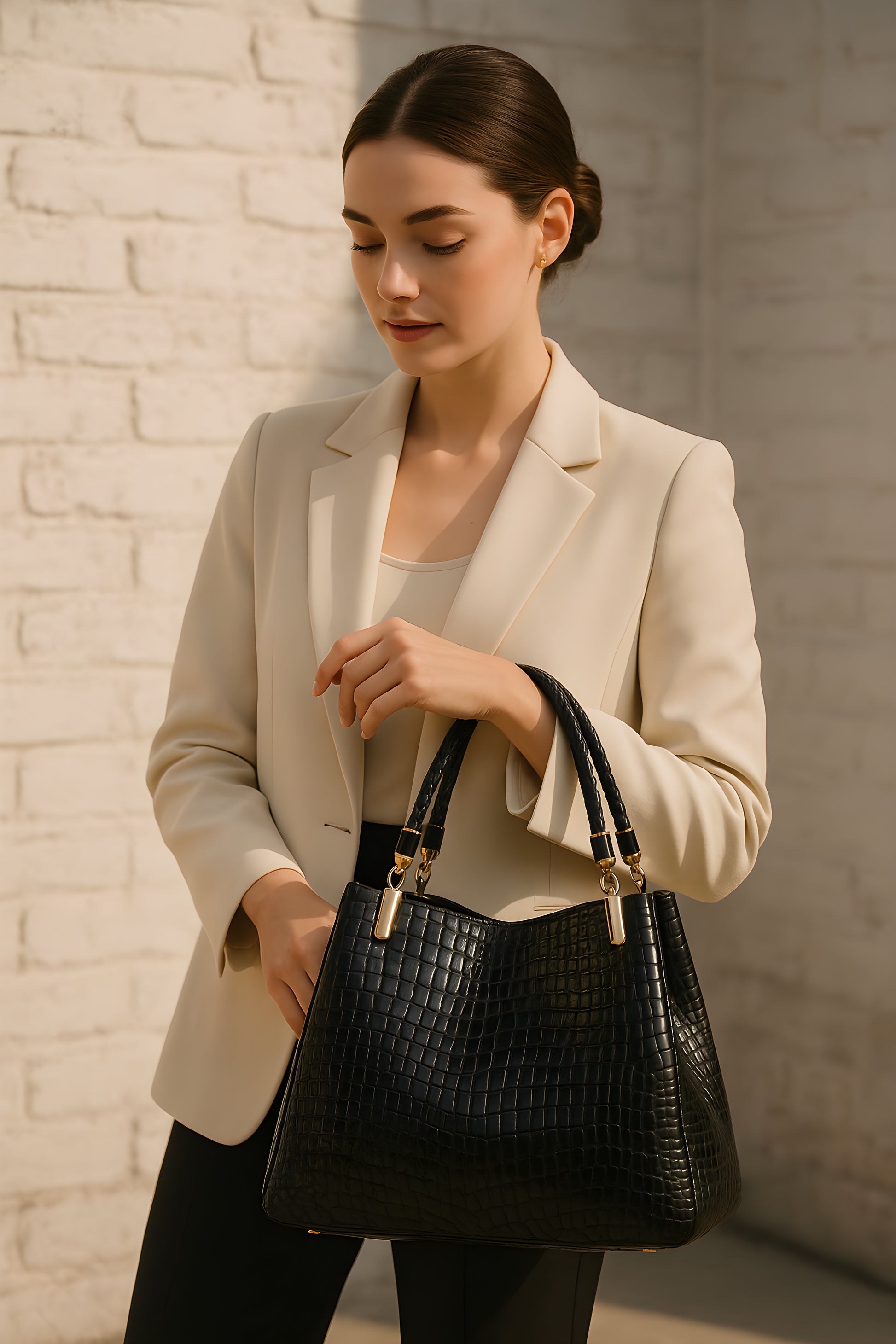 Crocodile-embossed PU leather brings bold, structured energy with a luxurious shine — without the upkeep of genuine exotic skins.